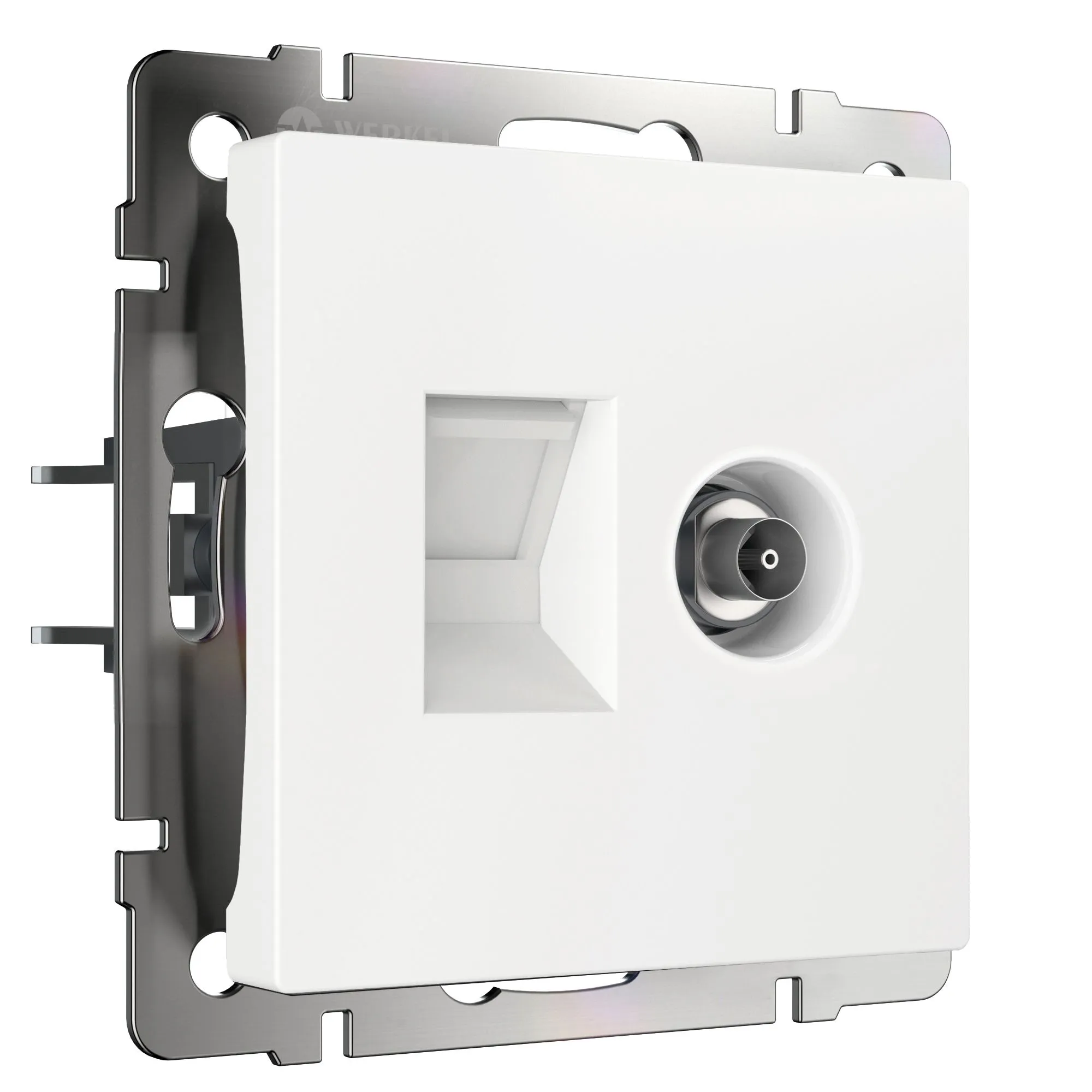 Современный интерьер требует современных решений! Универсальная розетка ТВ + Ethernet W1181301 в белом цвете от Werkel объединяет телевизионный разъём и сетевой порт RJ-45 категории 6А в одном стильном устройстве — идеально для подключения Smart-телевизоров, медиаприставок, роутеров и других цифровых устройств.