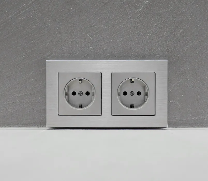 Особое внимание уделили электроустановочным изделиям. В проекте использовались розетки и выключатели торговой марки Werkel™, обрамленные строгими металлическими рамками из серии Aluminium. Эффектная шлифованная поверхность рамок гармонично сочетается с механизмами в серебряном цвете, подчеркивая минималистичный характер интерьера. Такие детали стали важным элементом общего дизайна, добавляя ему завершенности и современности.
